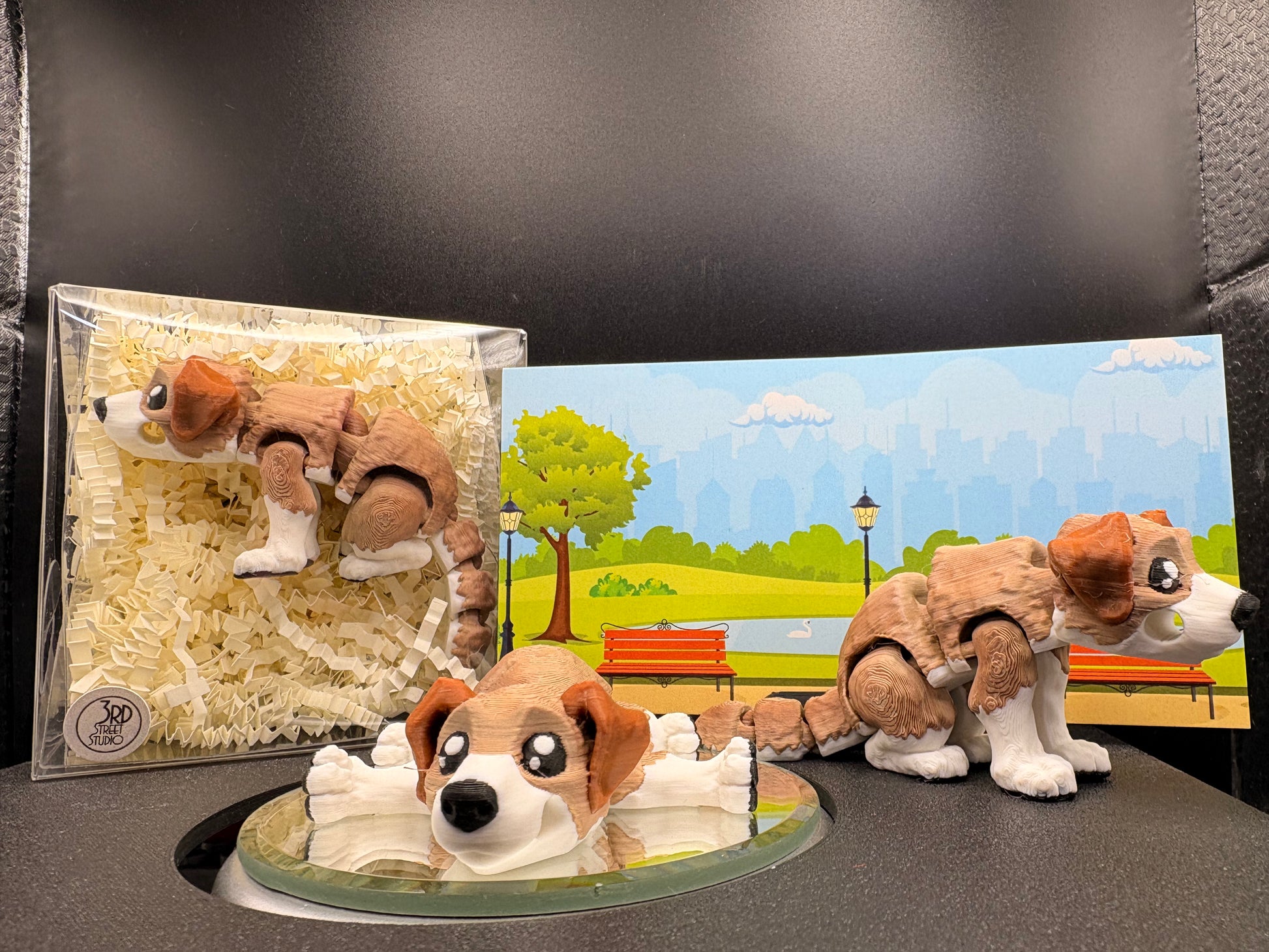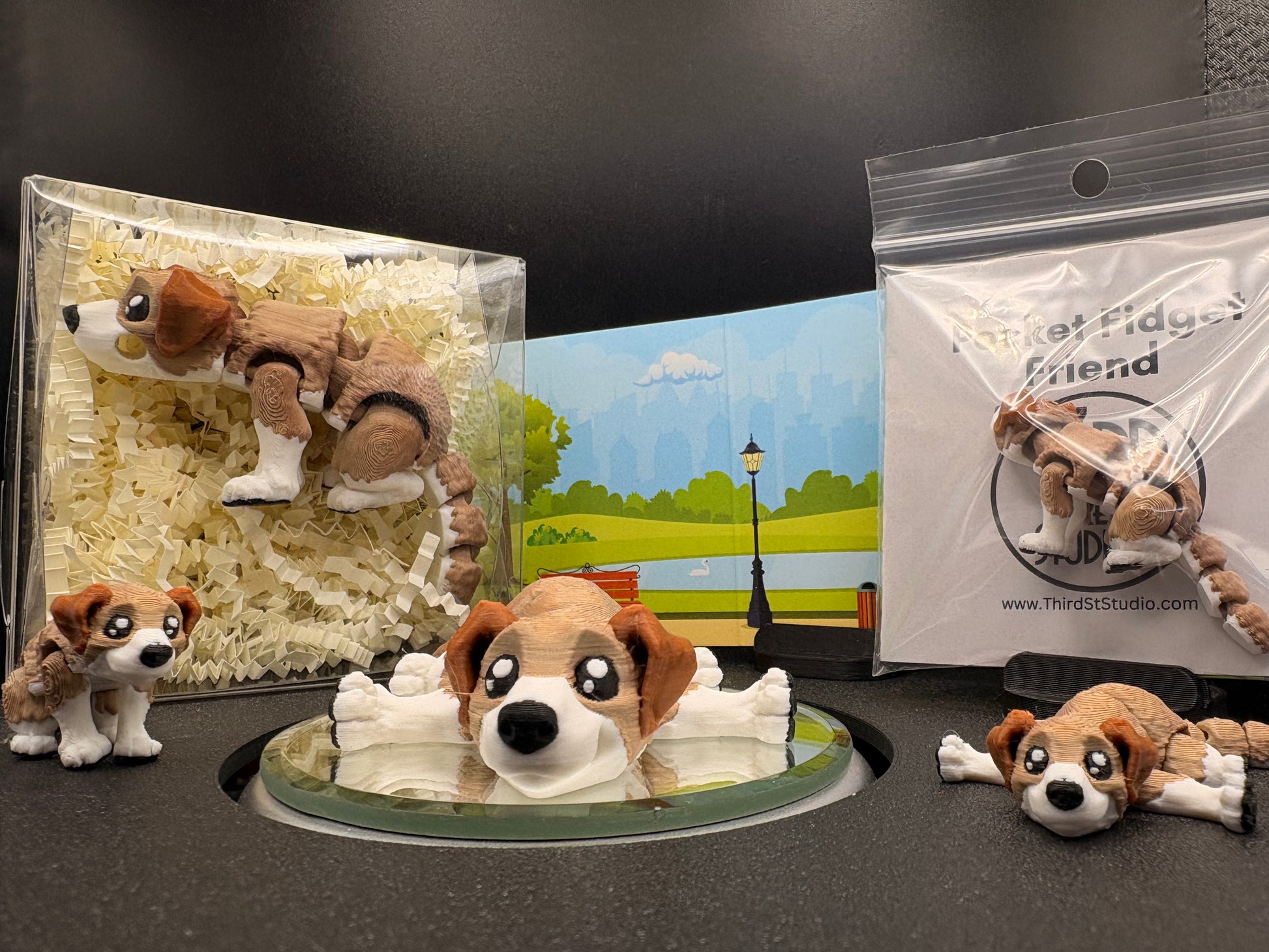 Imagine having a menagerie of pocket sized Dogs always at your side, crafted with the upmost care and attention to detail. Each Pocket Fidget Friend Dog is lovingly designed to bring joy to your everyday adventures. The average size of our pocket friend is approximately 1.5 inches packaged and a 3 inch bag with a background scene that measures 2.75 x 5.5 inches.